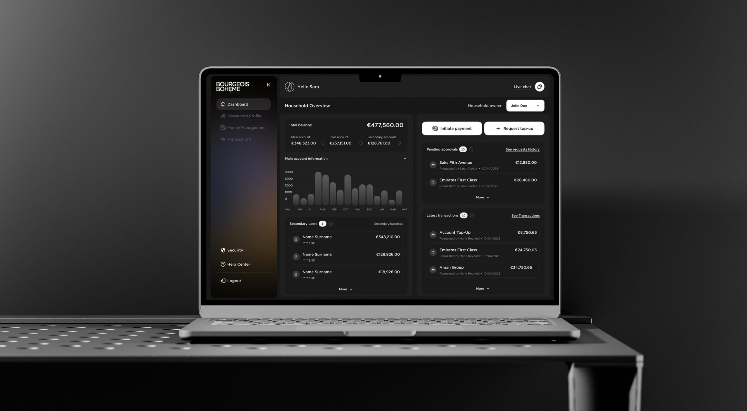 From staff spending to household operations and personal expenses, BOBO gives families a clear structure for financial control and support, without relying on outdated banking systems. It’s the infrastructure for how modern families already operate, just made easier. Founded by Willi Würms’ and Gregor Piëch’s families, BOBO was created with a clear vision: to meet the evolving needs of a new generation of high-net-worth families.