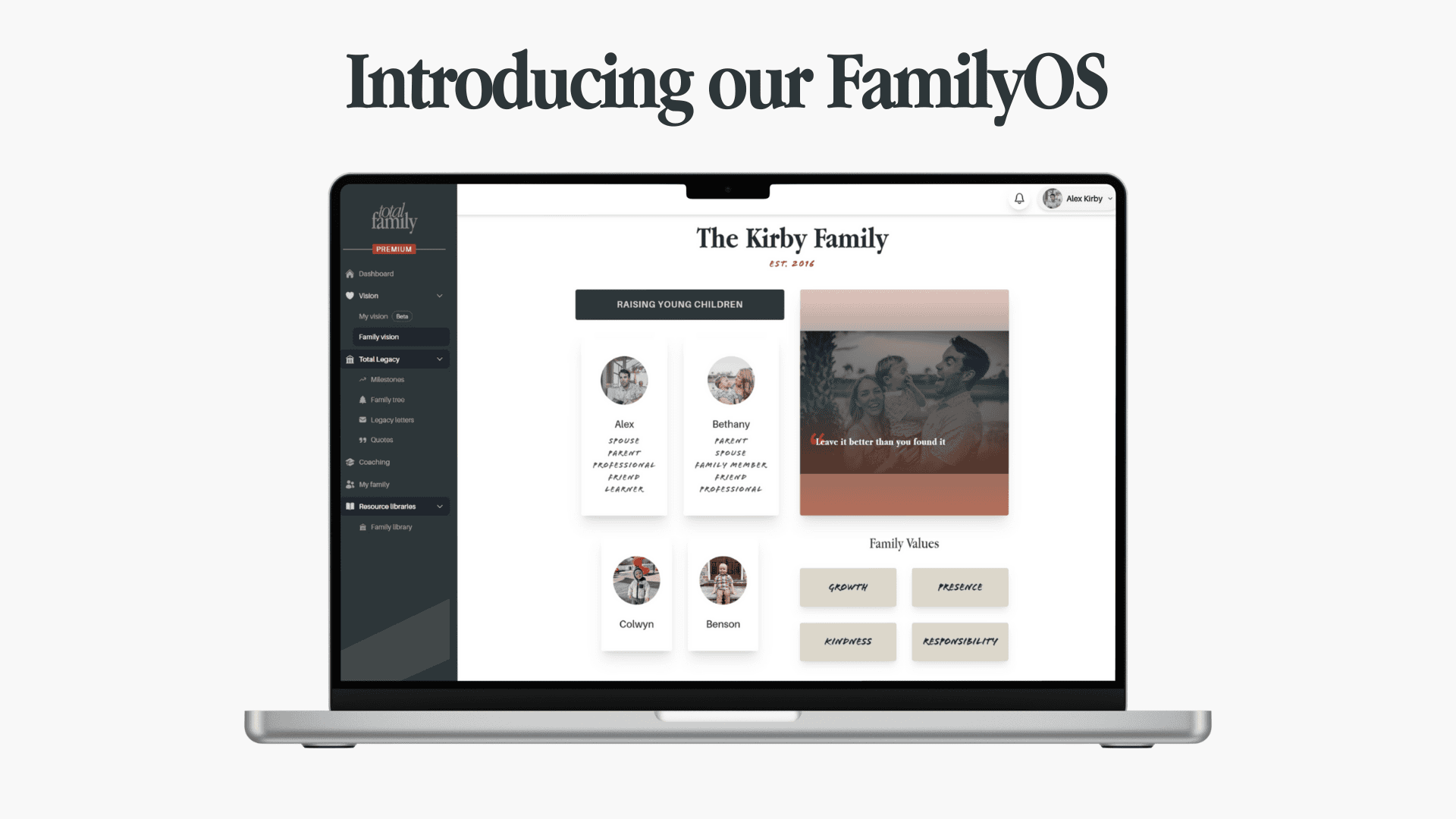 Total Family believes every family has a legacy, and tools like our FamilyOS should be available to everyone who wants them.